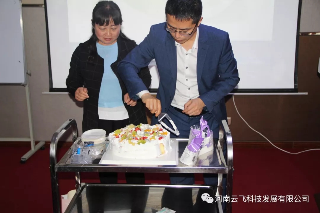 這個(gè)是一個(gè)神秘節(jié)目,公司借季度會(huì)議,對(duì)于四月份的生日的員工:陳達(dá)、鄭靜利,送上蛋糕和禮品!周總為生日員工切蛋糕!不過遺憾的是,陳達(dá)作為公司的副經(jīng)理,因?yàn)楣ぷ髟蛲獬龀霾,未能到場!為此周總組織大家為陳總錄了視頻,以表祝福!