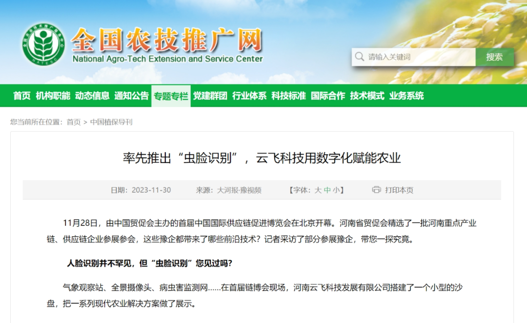 云飛科技攜AI蟲(chóng)害識(shí)別、農(nóng)業(yè)數(shù)字孿生等前沿技術(shù)亮相鏈博會(huì),并展示了病蟲(chóng)害監(jiān)測(cè)預(yù)警的一系列產(chǎn)品和高標(biāo)準(zhǔn)農(nóng)田數(shù)字化解決方案。展會(huì)現(xiàn)場(chǎng),眾多參觀者紛紛駐足于云飛科技展臺(tái),同時(shí)也吸引了眾多國(guó)外參觀者的目光和關(guān)注。